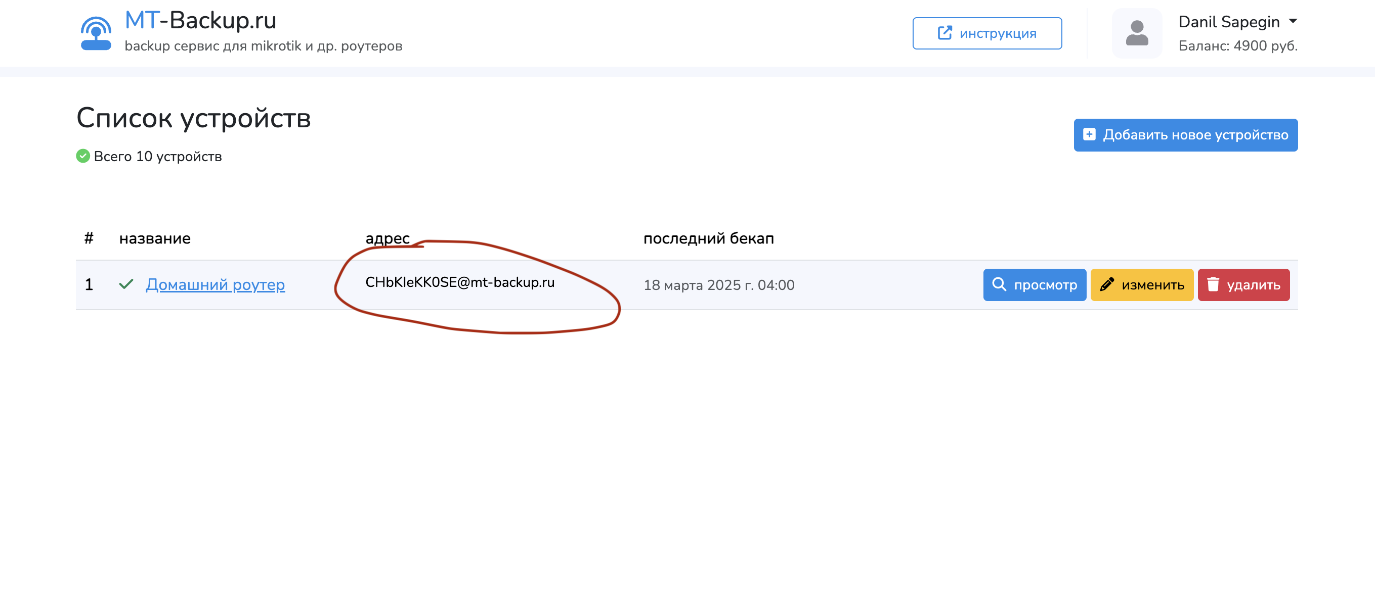 :local email \"CHbKIeKK0SE@mt-backup.ru\"\